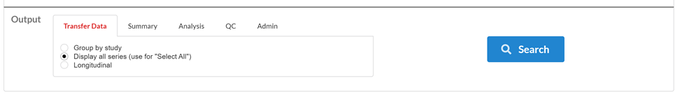 In this section, the structure of the search output can be defined. The output can be grouped based on study or all the series together. The output can be stored in “.csv” file using the summary tab. The Analysis tab is used to structure the pipeline analysis results.
