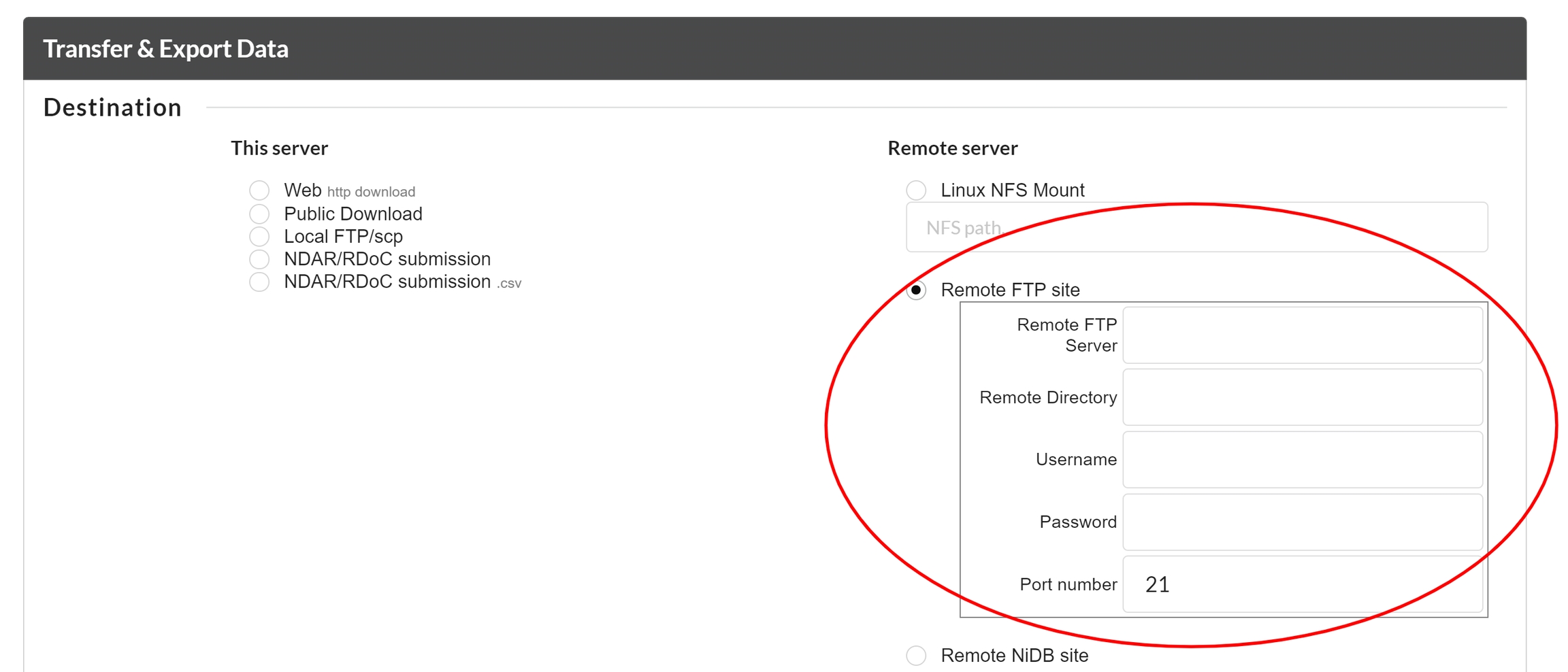 Export to Remote NiDB Site