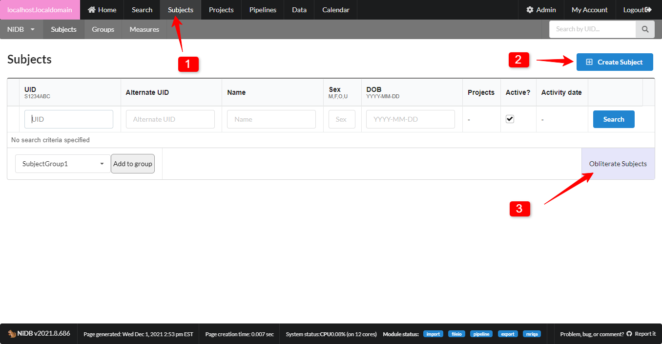 Obliterate subjects button: an intimidating sounding button that only appears for NiDB admins