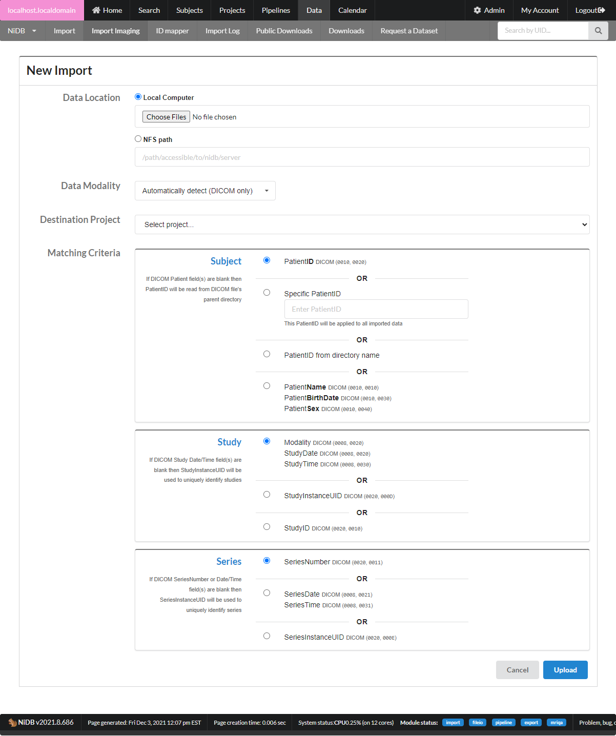 If you find that none of the available matching options work for your data, contact the NiDB development team because we want to cover all import formats!